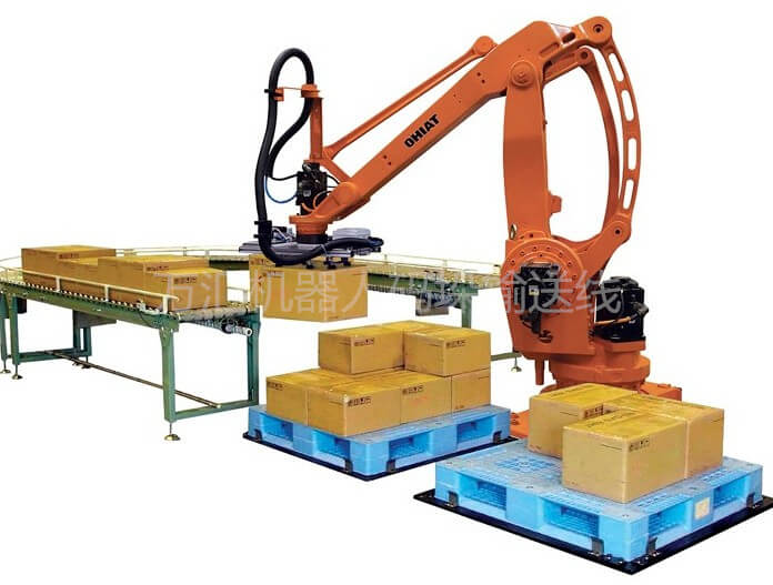 機(jī)器人碼垛系統(tǒng)是一種智能高效的碼垛機(jī)。隨著工業(yè)芯片技術(shù)上的發(fā)展及AI技術(shù)的進(jìn)步,機(jī)器人的智能性已經(jīng)代替人類的初步勞動(dòng),機(jī)器人碼垛機(jī)構(gòu)靈活輕便,是工廠的明智選擇